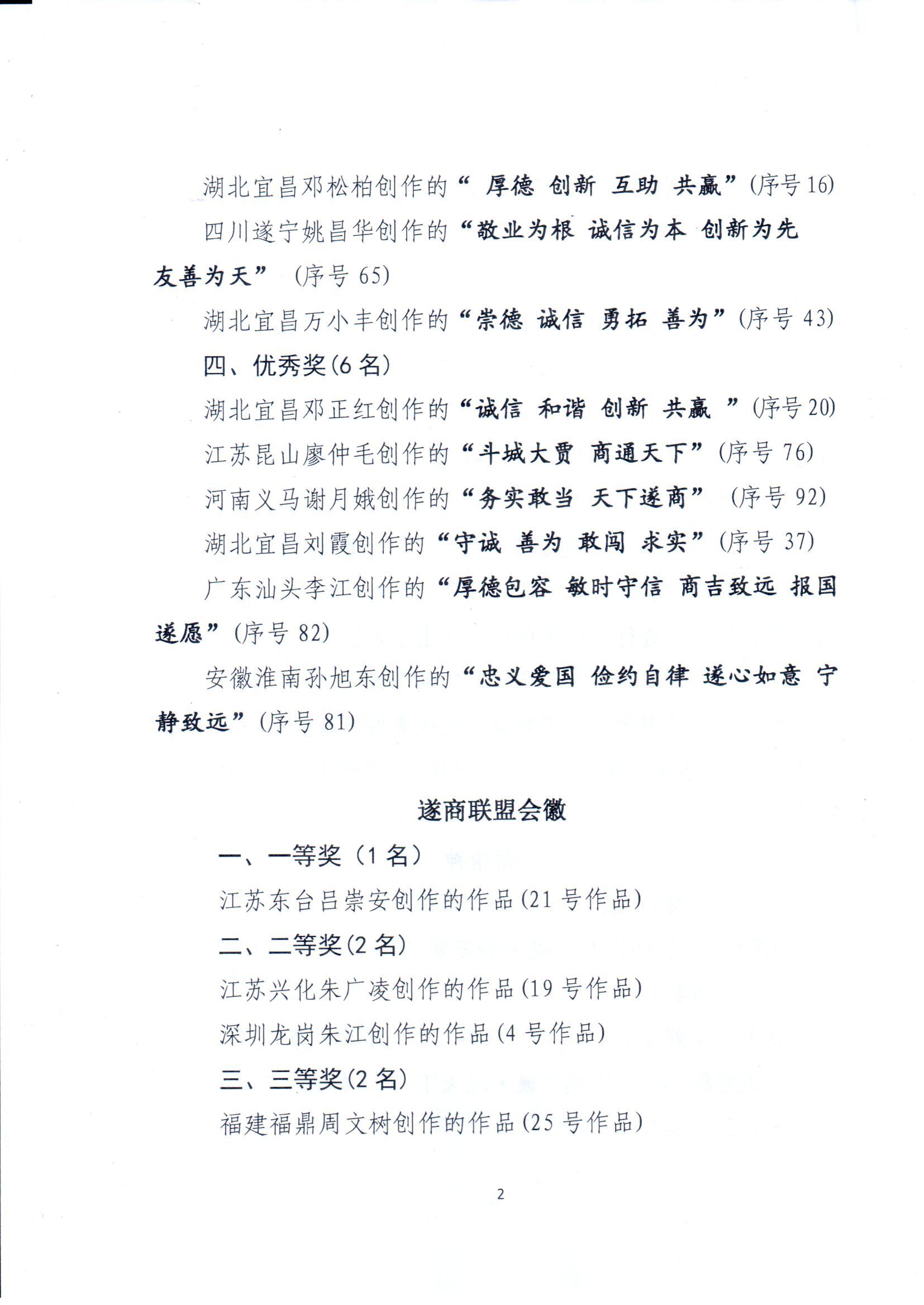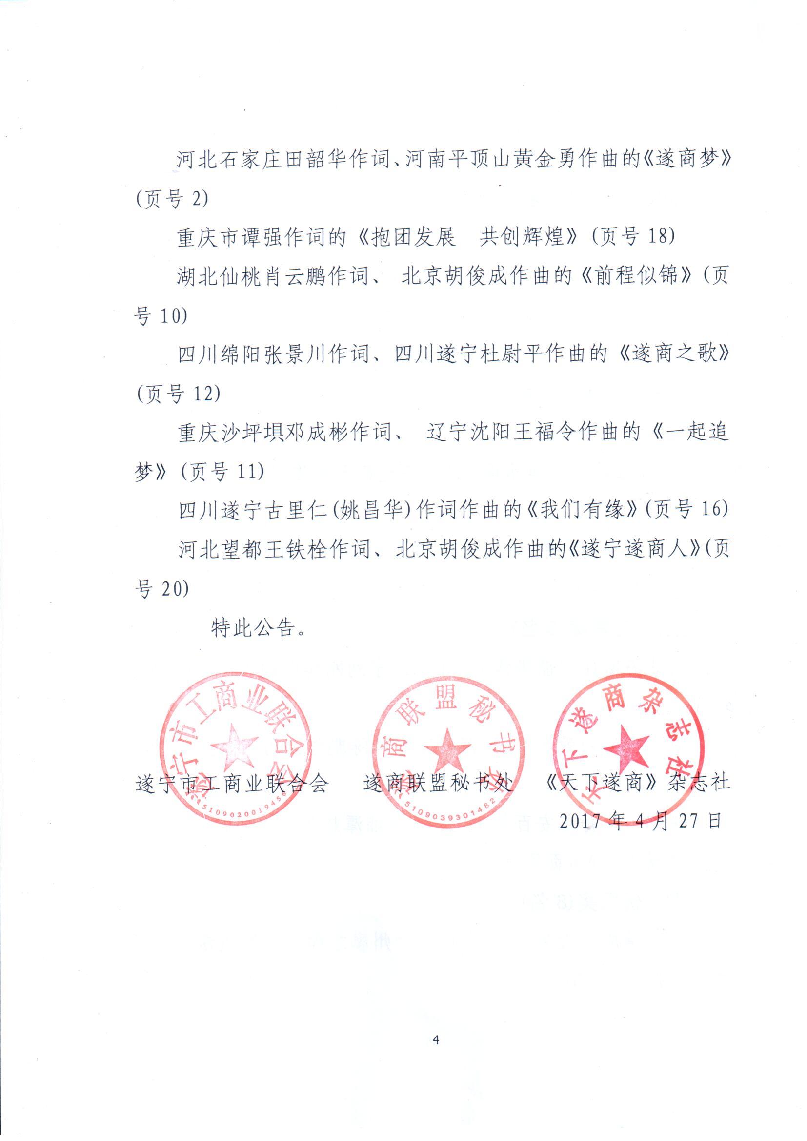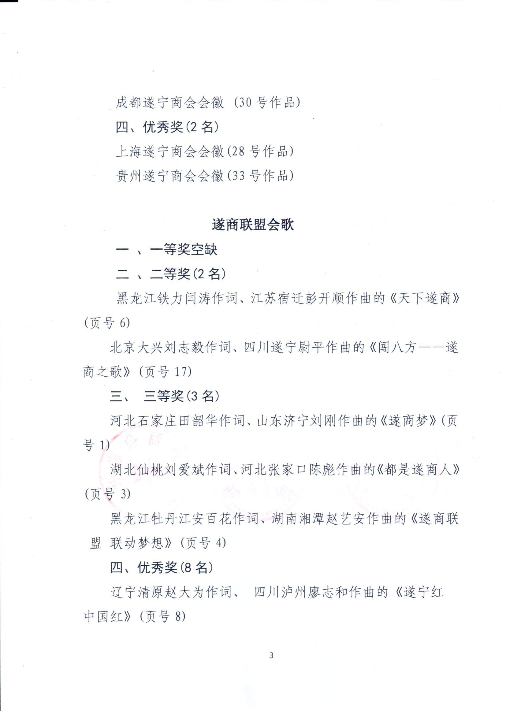 关于对遂商精神、遂商联盟会歌、会徽评审结果的公告